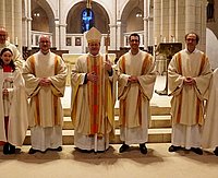 Personalausbildung Erfüllt von Hoffnung, nicht von Angst Mann/Bistum Limburg Bischof Georg Bätzing mit den beiden Neudiakonen und den Ausbildungsverantwortlichen. LIMBURG, 26.11.2022 Erfüllt von Hoffn