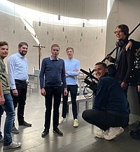 Personalausbildung Die Suche nach dem Heiligenschein der Hochschule der Medien, Stuttgart Dieses Foto entstand beim ersten Besuch, noch vor dem Lockdown: Die Seminaristen Christian Jager, Julian Kania
